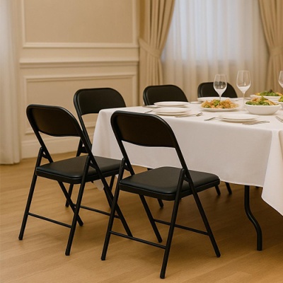 Uniwersalne czarne krzesło składane to idealny wybór na wszelkiego rodzaju wydarzenia – od przyjęć i imprez plenerowych, przez konferencje i szkolenia, po użytkowanie w domu, biurze czy ogrodzie. Dzięki składanej konstrukcji jest niezwykle wygodne w przechowywaniu i transporcie, a po rozłożeniu zapewnia stabilne i komfortowe miejsce do siedzenia.