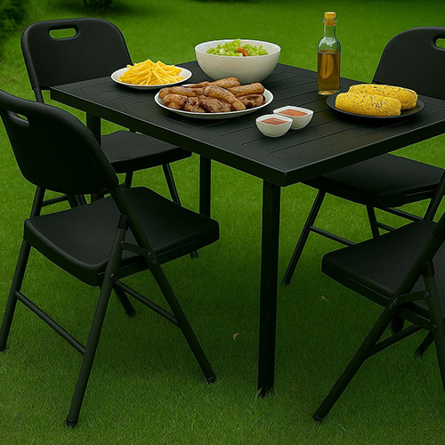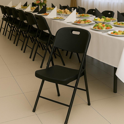 Czarne krzesło składane z HDPE i metalowym stelażem to niezawodne, wygodne i stylowe rozwiązanie, które znajdzie zastosowanie w każdej przestrzeni. Jeśli cenisz sobie funkcjonalność, wygodę i estetykę – ten produkt jest właśnie dla Ciebie!