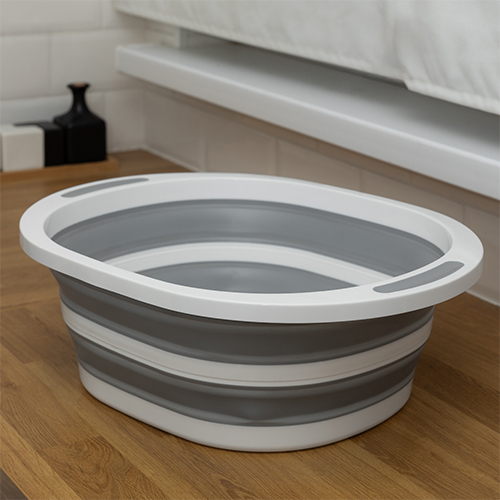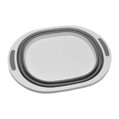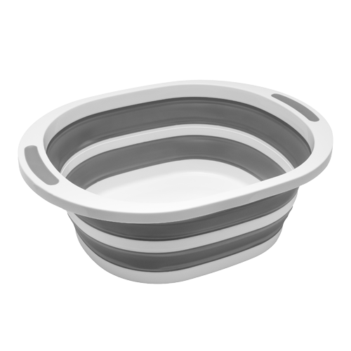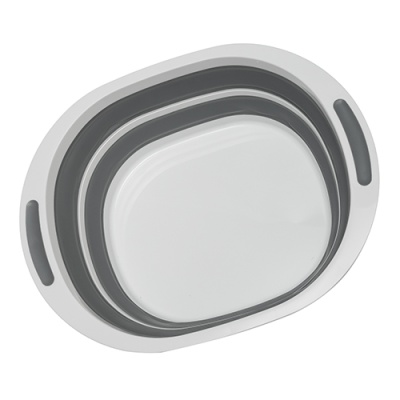 Składana miska silikonowa 12L – owalna, szara z uchwytami