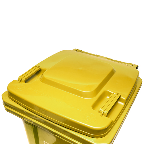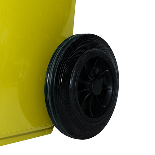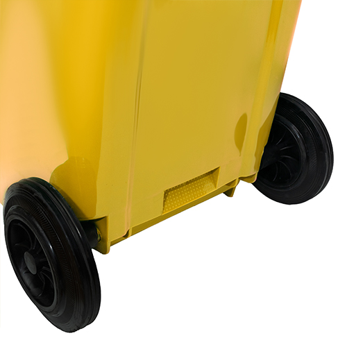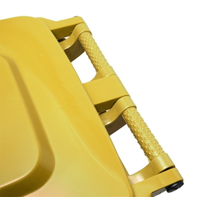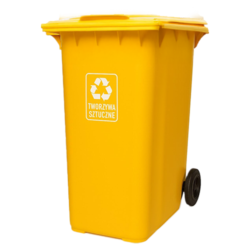 Szczelna pokrywa skutecznie chroni zawartość przed wiatrem, deszczem i owadami, a dwa gumowe koła oraz ergonomiczny uchwyt gwarantują wygodne przemieszczanie nawet przy pełnym obciążeniu. Intensywny żółty kolor jest zgodny z obowiązującymi zasadami segregacji odpadów w Polsce – przeznaczony do frakcji tworzywa sztuczne i metale.