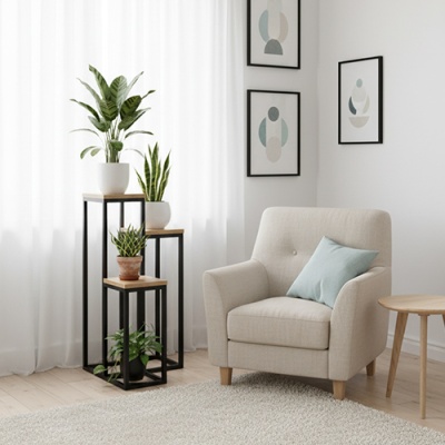Kwietnik Stojący Metalowy z Półką MDF – Design i Funkcjonalność w Nowoczesnym Wydaniu