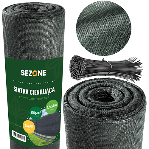 Siatka Cieniująca Maskująca 1,5x50m - Osłona na Ogrodzenie Płot UV 90% Grafit