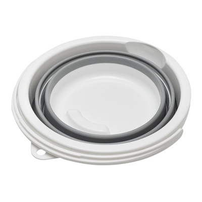 Dzięki składanej konstrukcji wiaderko zajmuje minimalną ilość miejsca – idealne do małych przestrzeni i na wyjazdy. Ergonomiczny uchwyt ułatwia przenoszenie, a nowoczesna kolorystyka (szaro-biała) wpisuje się w aktualne trendy.