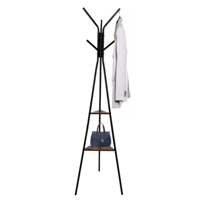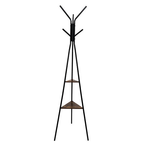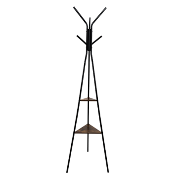 Styl i porządek w jednym? To możliwe! Ten wieszak stojący w stylu loftowym to nowoczesne i praktyczne rozwiązanie do przedpokoju, garderoby czy biura. Smukła, trójnożna konstrukcja wykonana z trwałego metalu zapewnia stabilność, a ciemne, drewnopodobne półki dodają całości elegancji i surowego uroku. Idealny do wnętrz urządzonych w stylu industrialnym, nowoczesnym lub minimalistycznym.